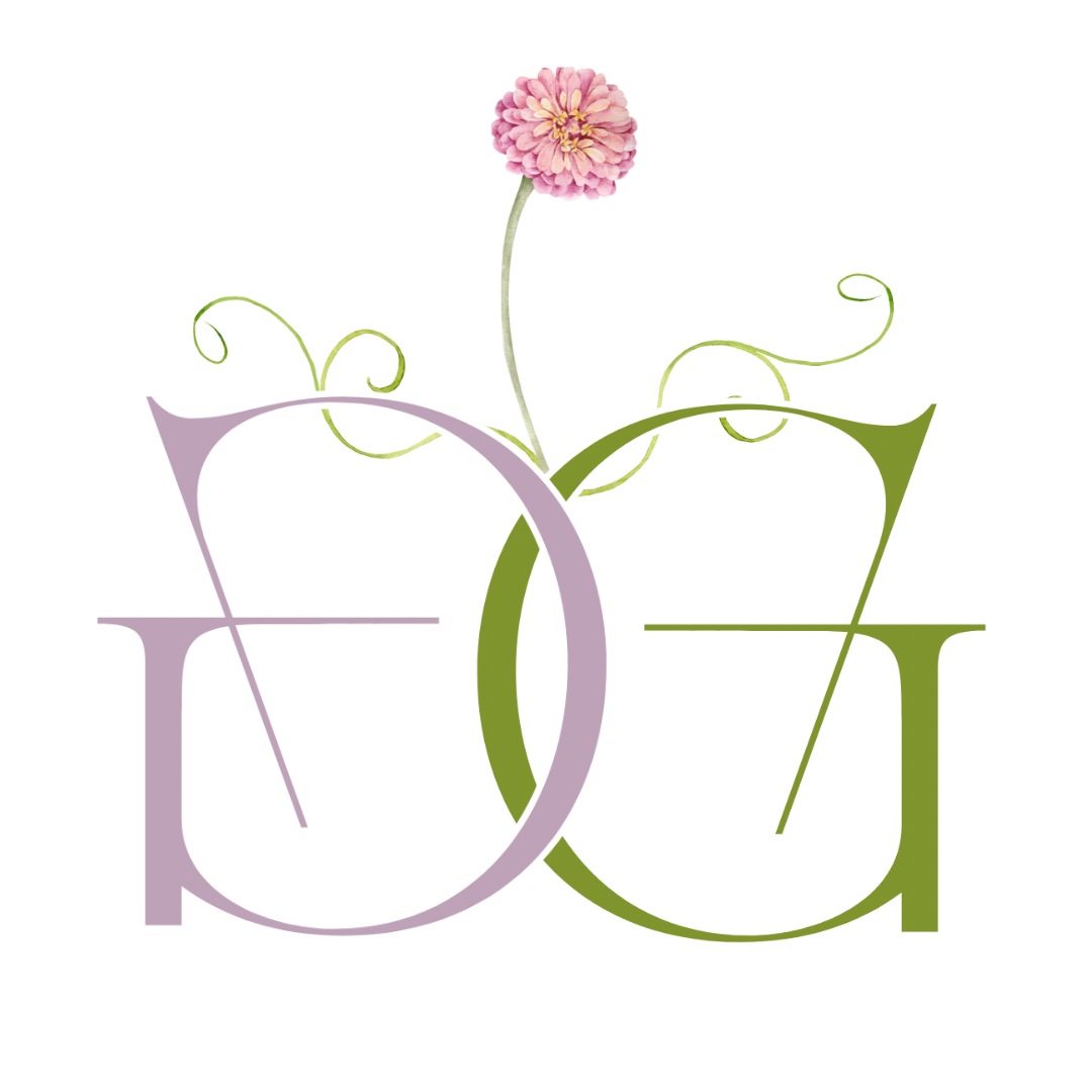 Colorful interlocking graphic with overlapping letters and a pink floral illustration at the top.